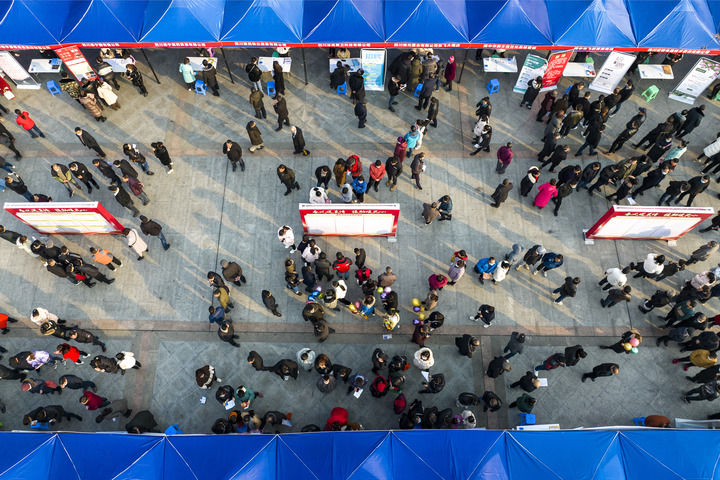 2023年1月31日,在四川省閬中市人民廣場,求職者參加東西部勞務協(xié)作暨春風行動大型招聘會(無人機照片)。新華社發(fā)(王玉貴 攝)