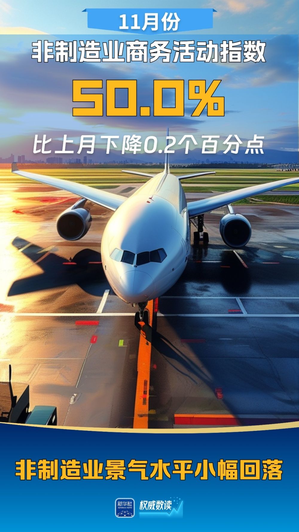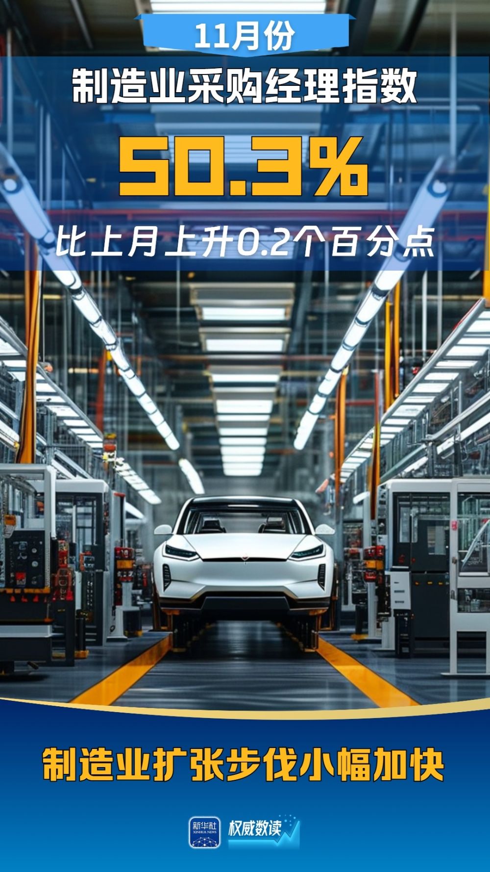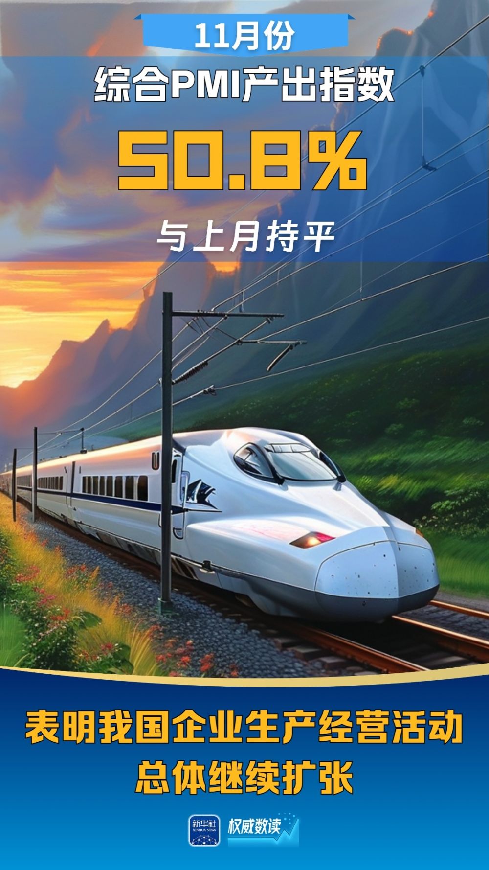 國家統(tǒng)計局30日發(fā)布中國采購經(jīng)理指數(shù)。11月份,隨著一系列存量政策和增量政策持續(xù)協(xié)同發(fā)力,制造業(yè)PMI在景氣區(qū)間上行,升至50.3%,擴張步伐有所加快;非制造業(yè)商務活動指數(shù)為50.0%,比上月下降0.2個百分點,位于臨界點;綜合PMI產(chǎn)出指數(shù)為50.8%,與上月持平,表明我國企業(yè)生產(chǎn)經(jīng)營活動總體繼續(xù)擴張。