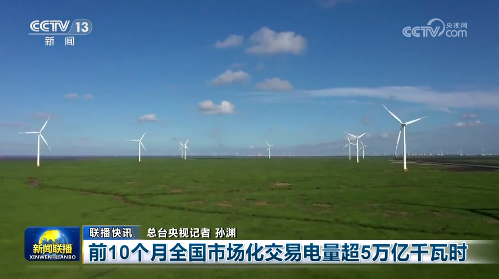 前10個(gè)月全國(guó)市場(chǎng)化交易電量超5萬(wàn)億千瓦時(shí)