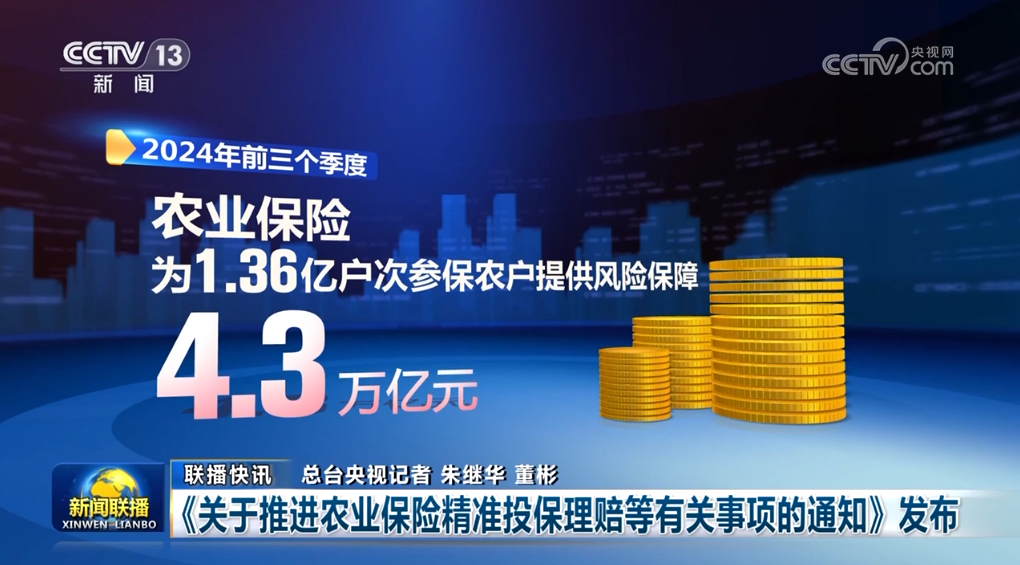 金融監(jiān)管總局等四部門近日聯(lián)合發(fā)布通知,對(duì)農(nóng)業(yè)保險(xiǎn)投保理賠、應(yīng)收保費(fèi)、條款費(fèi)率、數(shù)據(jù)共享等提出要求,進(jìn)一步提高投保理賠精準(zhǔn)性,推動(dòng)我國(guó)農(nóng)業(yè)保險(xiǎn)高質(zhì)量發(fā)展。今年前三個(gè)季度,農(nóng)業(yè)保險(xiǎn)為1.36億戶次參保農(nóng)戶提供風(fēng)險(xiǎn)保障4.3萬(wàn)億元。
