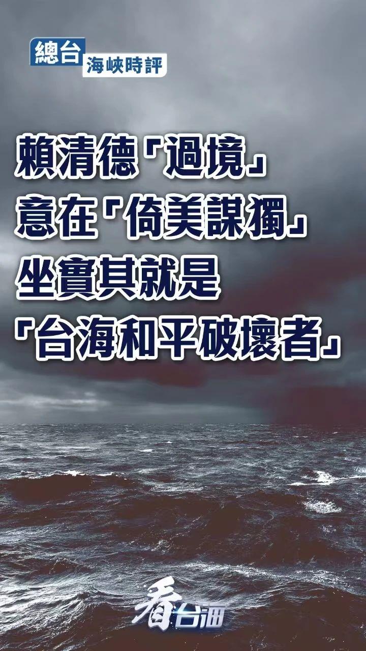 總臺(tái)海峽時(shí)評(píng)丨賴清德“過(guò)境”意在“倚美謀獨(dú)” 坐實(shí)其就是“臺(tái)海和平破壞者”