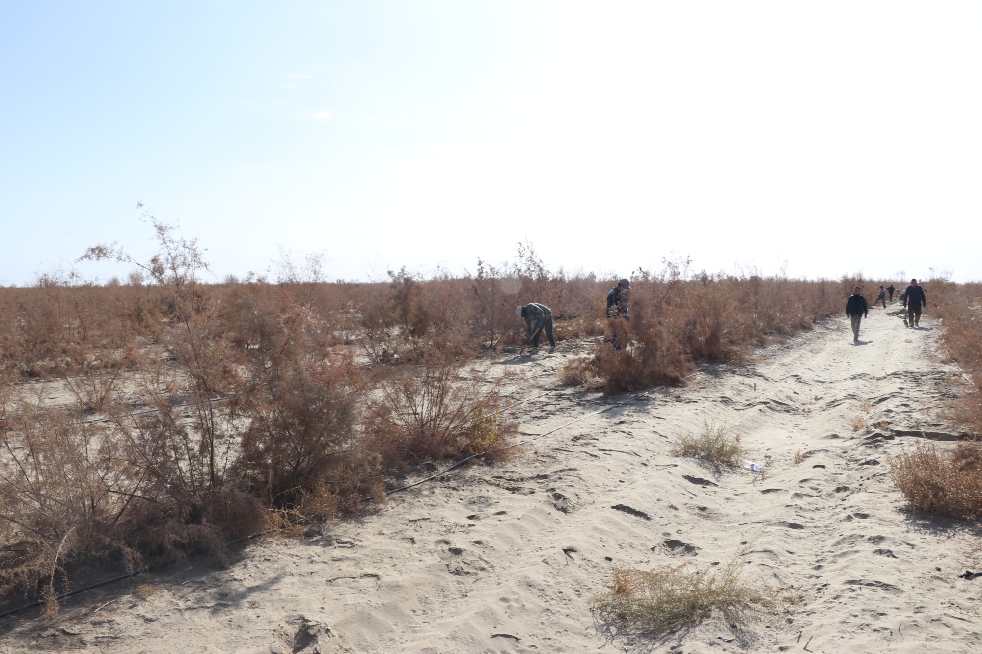 沙地平整,通過生物治沙改變當?shù)厣鷳B(tài)環(huán)境 (墨玉縣融媒體中心供圖)