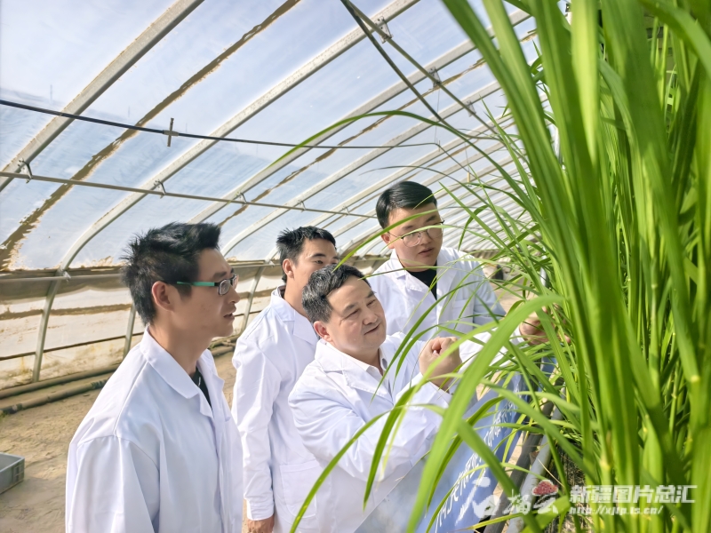 11月20日,和田地區(qū)和田縣萬畝設(shè)施農(nóng)業(yè)基地沙漠溫室水稻種植大棚內(nèi),中國農(nóng)業(yè)科學(xué)院都市農(nóng)業(yè)研究所首席科學(xué)家楊其長團(tuán)隊(duì)正在查看水稻長勢。胡禮政攝