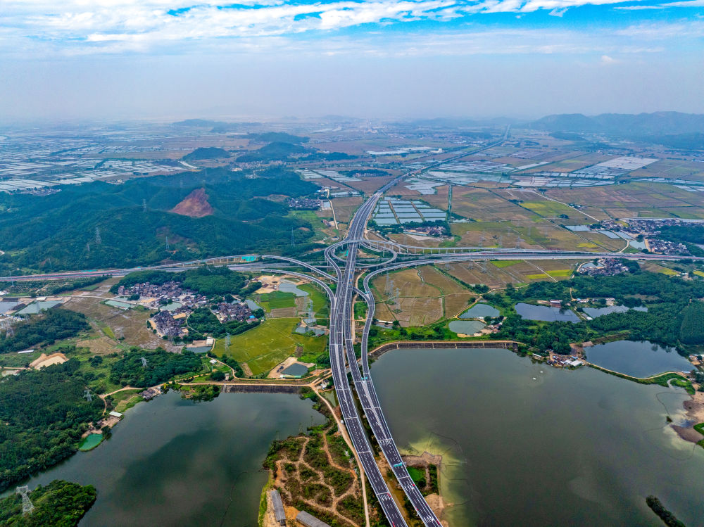 中鐵十四局承建的黃茅海跨海通道中和互通(11月23日攝,無(wú)人機(jī)照片)。新華社發(fā)(馮珠仔 攝)