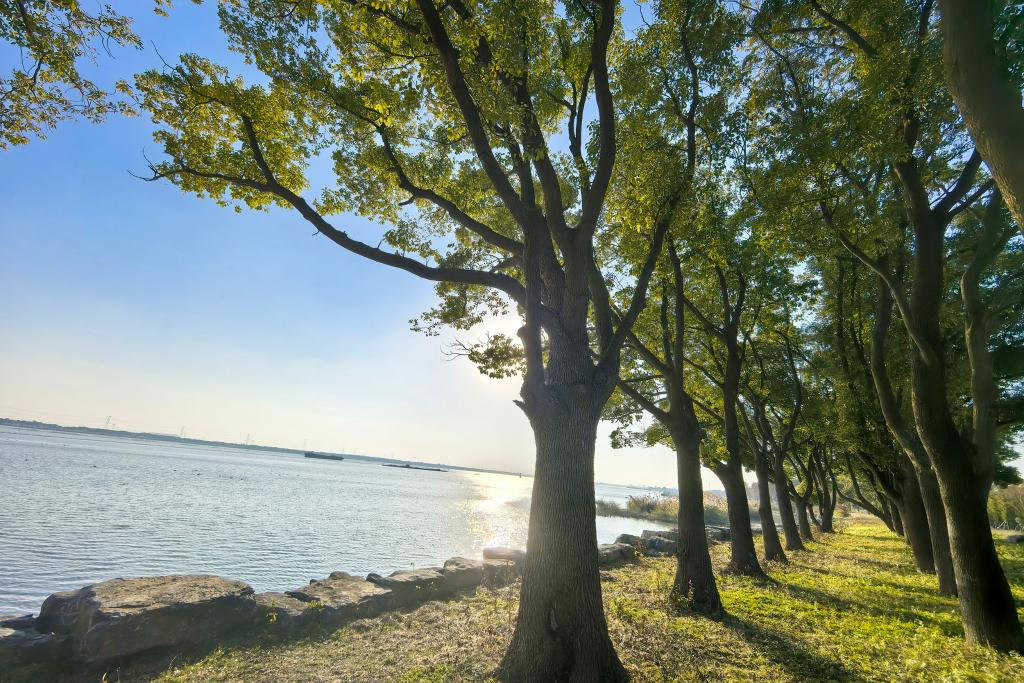 西起太湖、東到黃浦江的太浦河,是示范區(qū)的行洪通道,也是航運的黃金水道。河畔驛站里,人們可以一邊喝著咖啡一邊了解這條河的變遷——衛(wèi)星圖上,2017年沿河的碼頭、工廠、養(yǎng)殖場如今早已清理騰退,示范區(qū)的人們以壯士斷腕的果決修復了岸線生態(tài),護著一江清水向東流。