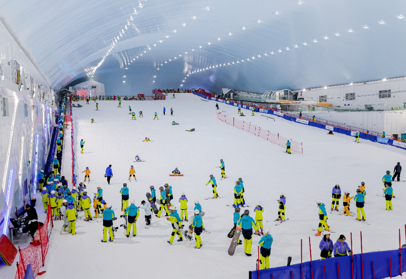 例如,廣州熱雪奇跡就采用超大型制冷設(shè)備對超過5萬平方米的冷區(qū)進行全天候制冷控溫,確保四季零下6℃的適雪溫度?!拔覀兠磕暌淮稳鎿Q雪,換雪量近20000立方米,每月通過造雪機器制造新雪,并在每日凌晨補雪壓雪,保障新鮮雪地迎接滑雪愛好者?!睆V州熱雪奇跡總經(jīng)理孫錚表示。