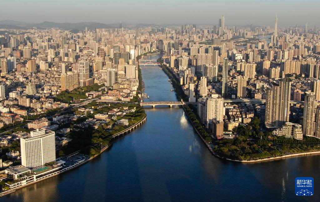 廣州白鵝潭一景(2024年11月29日攝,無(wú)人機(jī)照片)。
