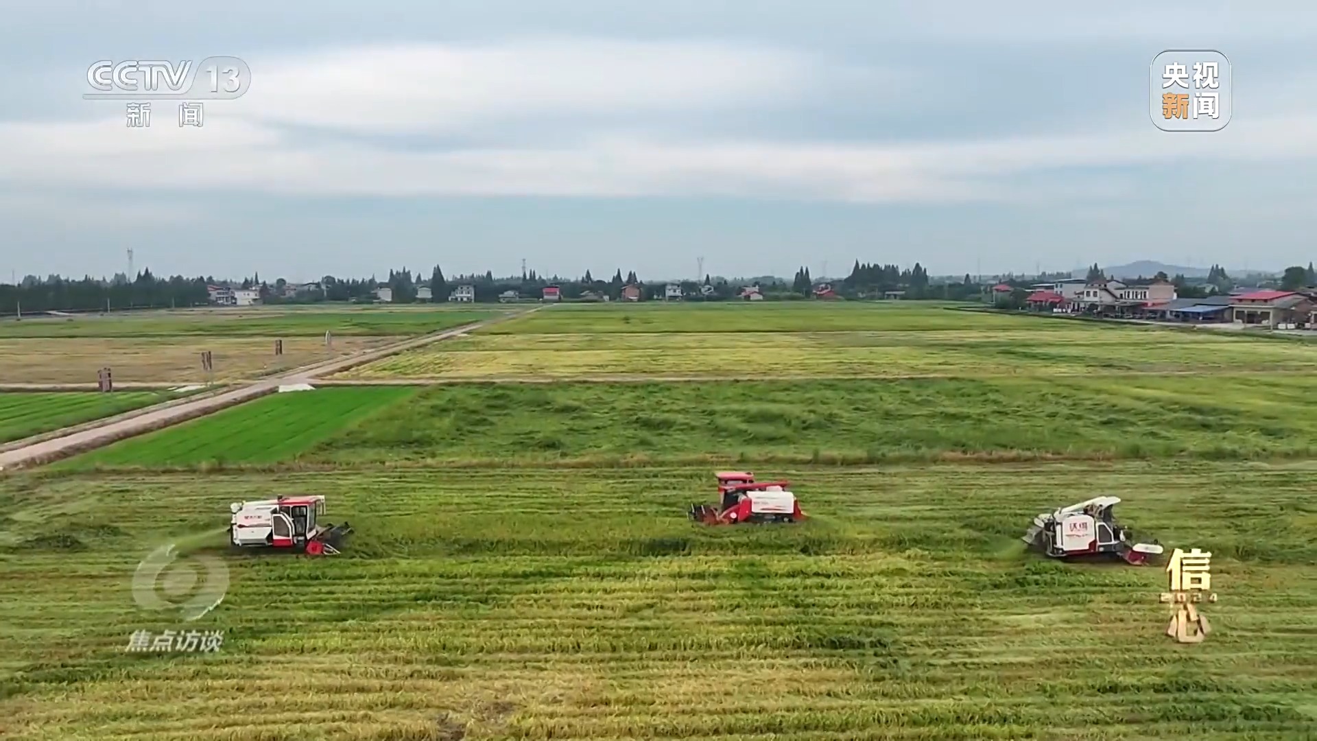 農(nóng)業(yè)是一切發(fā)展的基礎(chǔ),今年我國糧食不僅連續(xù)第21年迎來豐收,而且首次超過了1.4萬億斤。位于湖北荊門的一片農(nóng)田,豐收的色彩濃郁飽滿,今年這里實施大豆玉米帶狀復(fù)合種植,第一次采用6行玉米4行大豆相間種植,實現(xiàn)了一地雙收,畝產(chǎn)首次超過了1200斤。廣東清遠,水稻田里一片金黃,走近去看,粒粒飽滿,這里種植的是絲苗米。在收割機的幫助下,稻谷顆粒歸倉。通過現(xiàn)代化農(nóng)業(yè)技術(shù)的應(yīng)用,這里確保了水稻穩(wěn)產(chǎn)高產(chǎn),農(nóng)業(yè)產(chǎn)業(yè)化跑出了加速度,僅一季晚稻的畝產(chǎn)量就超過了1200斤,和去年相比增加了近10%。2024年,我國糧食再獲豐收,單產(chǎn)提升是重要的支撐。民以食為天,把中國飯碗牢牢端住,讓人倍感踏實。