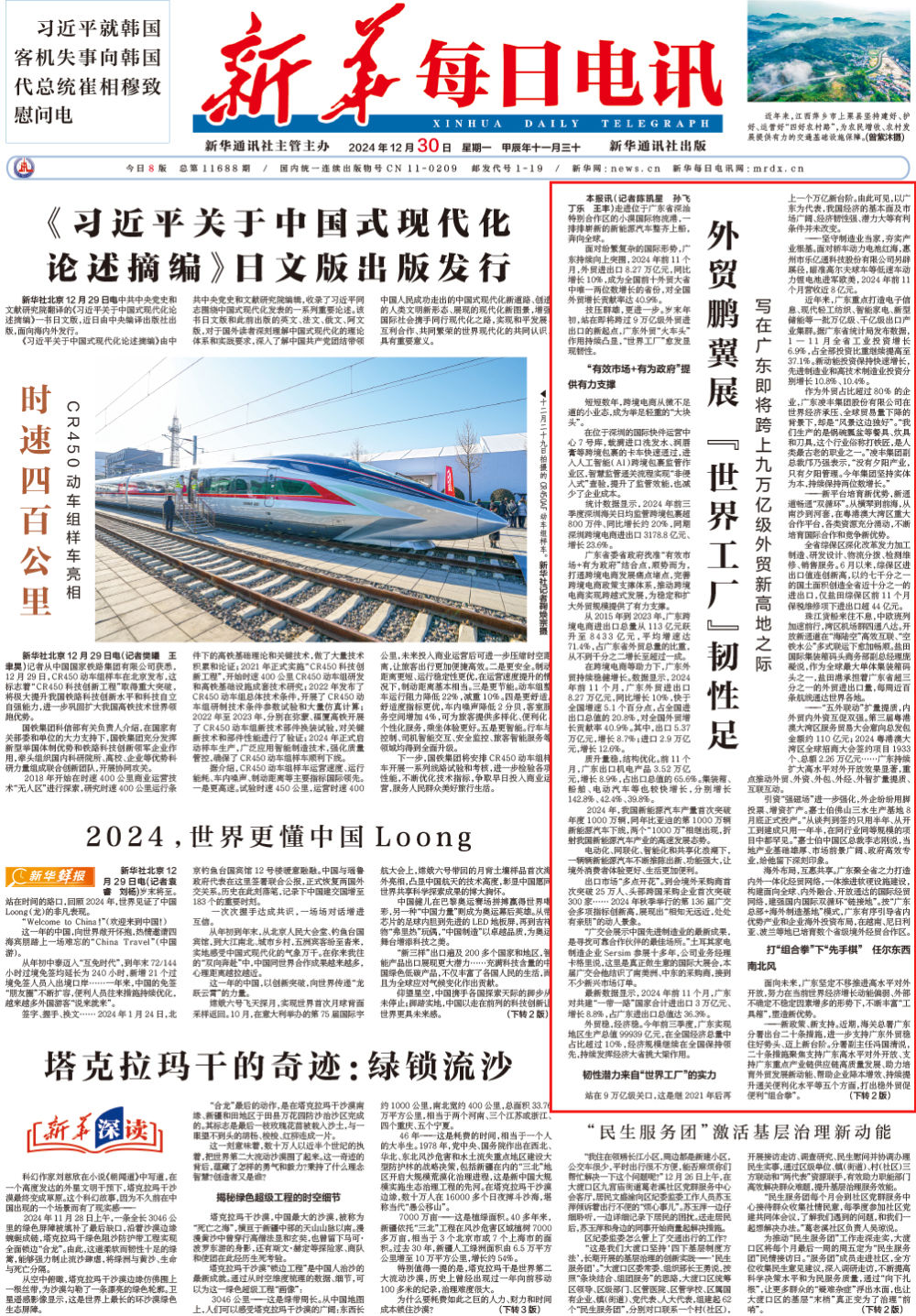 ——“五外聯(lián)動”擴量提質(zhì),內(nèi)外貿(mào)內(nèi)外資互促雙強。第三屆粵港澳大灣區(qū)服務(wù)貿(mào)易大會意向總發(fā)包金額約110億元;2024粵港澳大灣區(qū)全球招商大會簽約項目1933個、總額2.26萬億元……廣東持續(xù)擴大高水平對外開放效果顯著,重點推動外貿(mào)、外資、外包、外經(jīng)、外智擴量提質(zhì)、互聯(lián)互動。