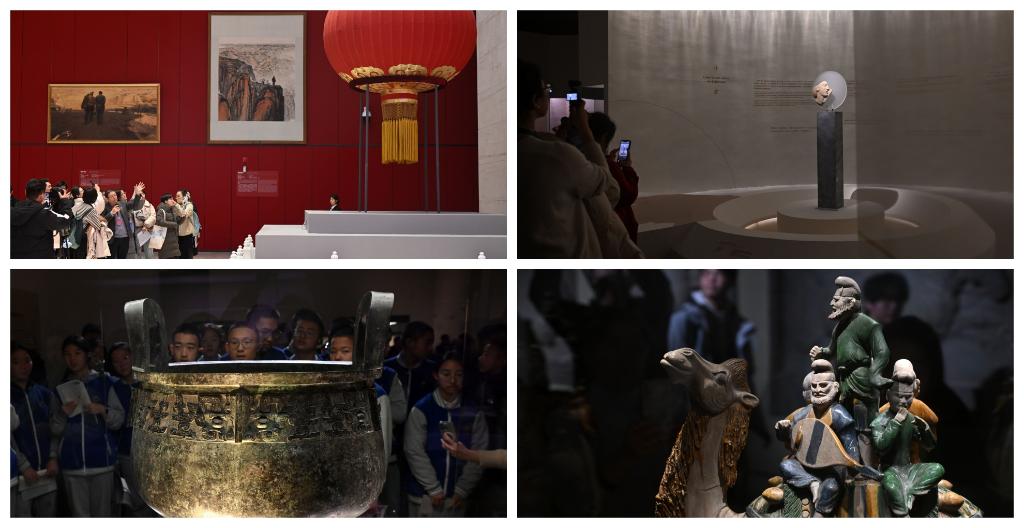 拼圖:走進(jìn)中國(guó)國(guó)家博物館感受“文博熱”:(左上)“風(fēng)展紅旗如畫——館藏紅色經(jīng)典文物展”(右上)“美的多元——古希臘的藝術(shù)與生活”展覽(左下、右下)“古代中國(guó)”基本陳列展