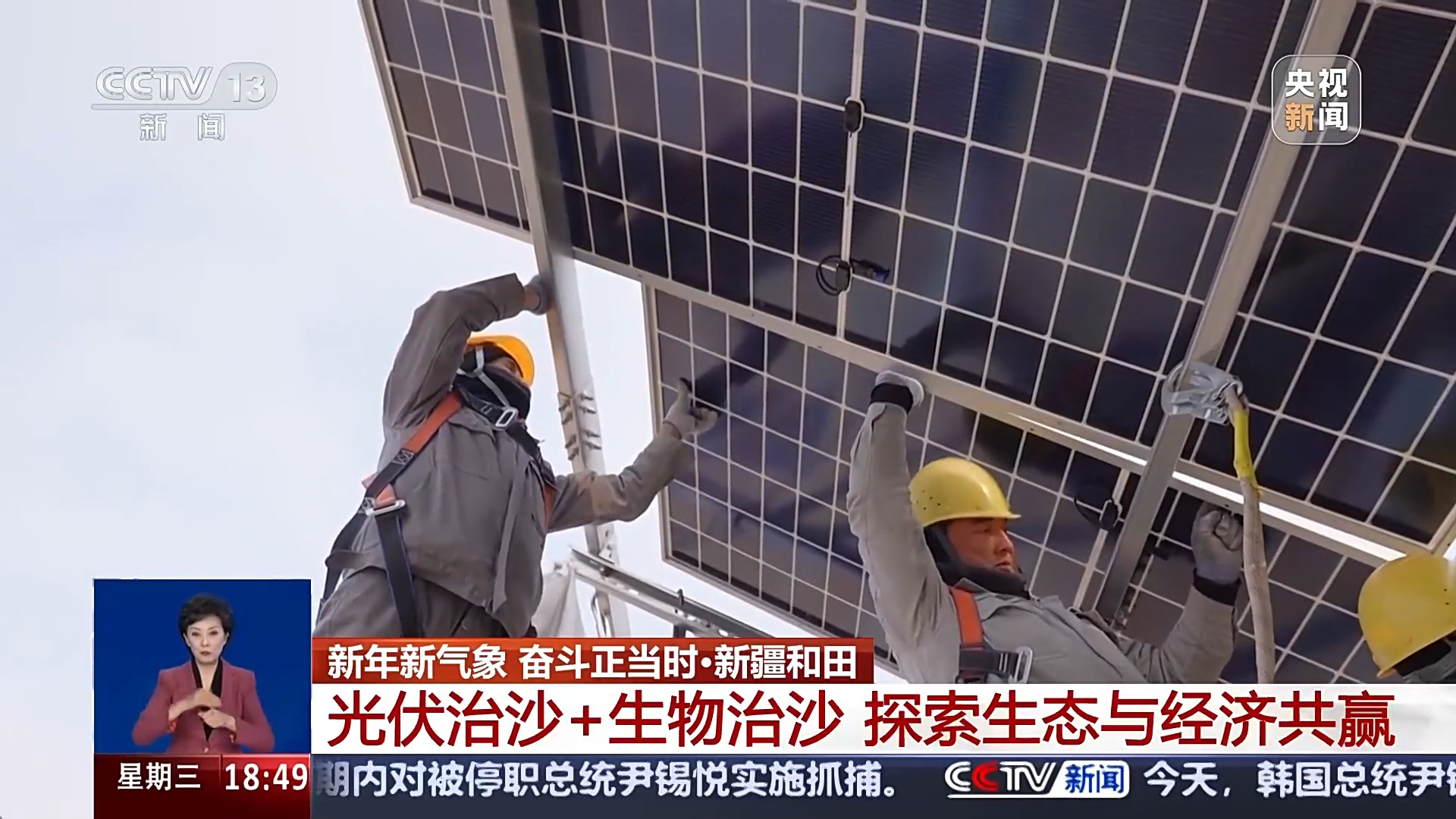 除了為生物治沙作準(zhǔn)備,塔克拉瑪干沙漠中還有不少光伏項(xiàng)目正在建設(shè),工人們加緊鋪設(shè)光伏板,到春天,光伏板下還會(huì)種上苜蓿、狼尾草等固沙植物,這處包含光伏治沙、生物治沙的鎖邊工程拓寬項(xiàng)目,也將成為新疆探索生態(tài)治理與經(jīng)濟(jì)發(fā)展共贏的一個(gè)新模式。
