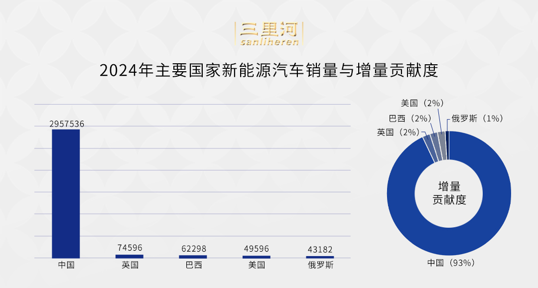 “2024年中國新能源乘用車銷量對世界的增量貢獻(xiàn)度是93%,英國、巴西、美國都是2%,俄羅斯1%,所以整個世界新能源車總體的增量貢獻(xiàn)基本就是在中國?!?/p>