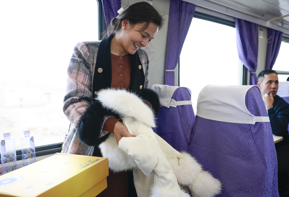 這次坐車,布麥熱姆發(fā)現(xiàn)了新變化:車廂的連接處貼上了對聯(lián),車窗上多了喜慶的窗花。“回家后幫我媽打掃衛(wèi)生,再給她包個紅包。”布麥熱姆說,年味十足的車廂倒是提醒他,回家要抓緊備年貨了。