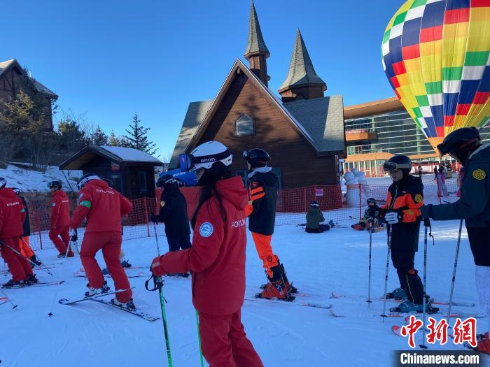 正值2024至2025雪季期間,當(dāng)日下午,一行人來(lái)到富龍滑雪場(chǎng)體驗(yàn)滑雪??紤]多數(shù)人是“首滑”,當(dāng)?shù)匕才帕藢I(yè)教練教授雙板滑雪入門知識(shí)。