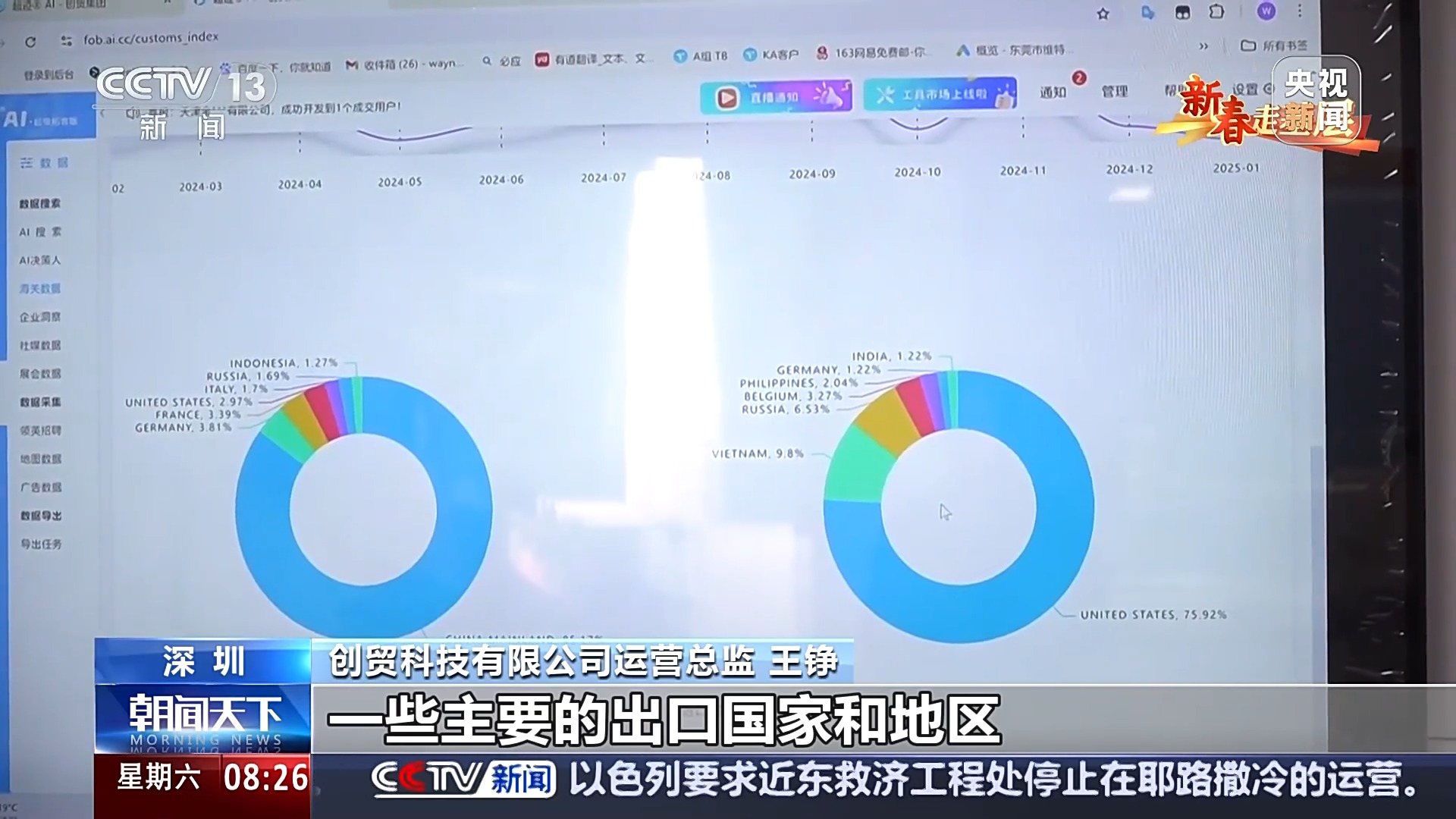 創(chuàng)貿(mào)科技有限公司運營總監(jiān) 王錚:我們統(tǒng)計了一下,目前全球關(guān)于這一款產(chǎn)品的一些主要的出口國家和地區(qū),以及進口國家和地區(qū)也是展示出來了。