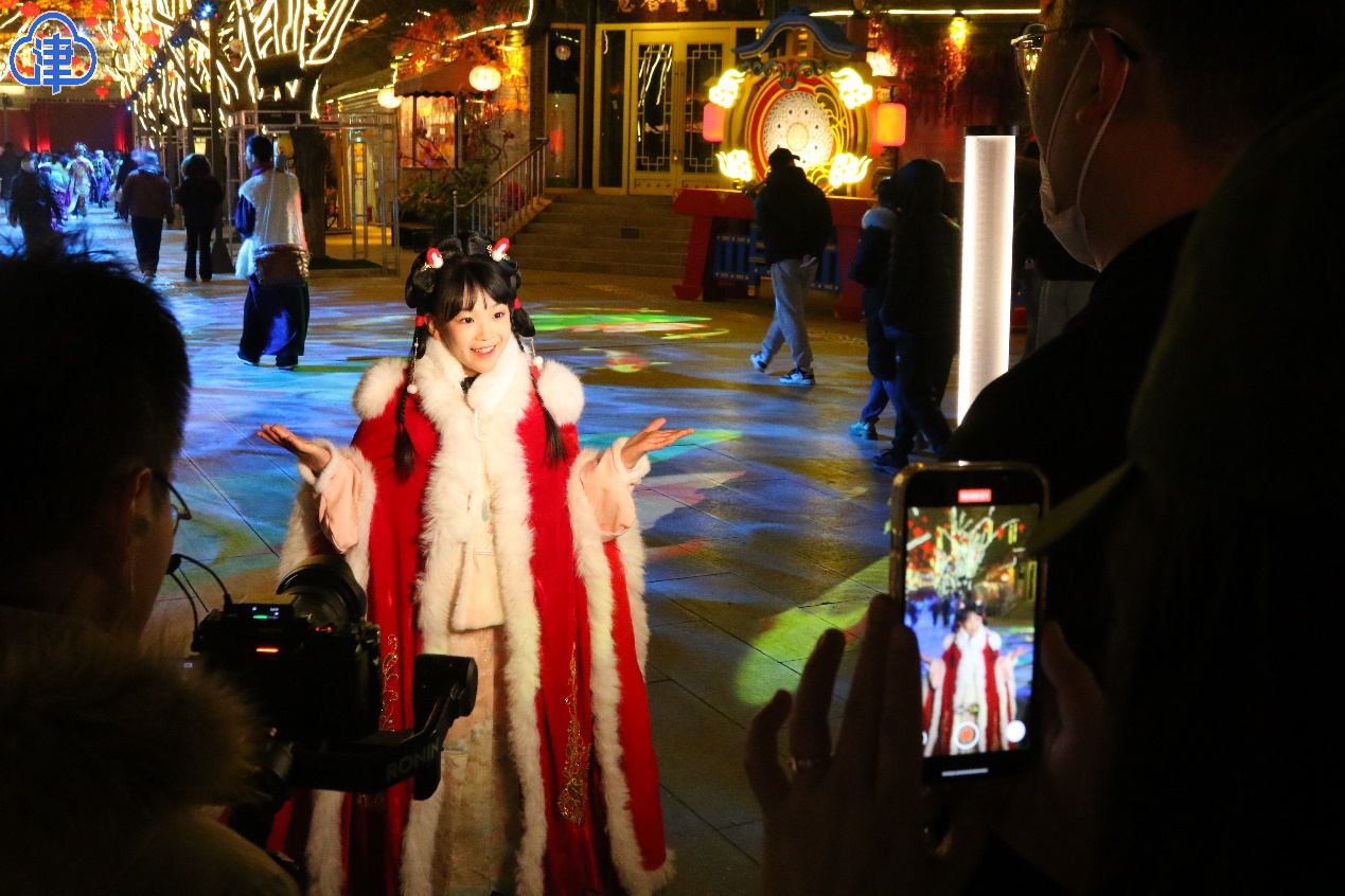 “楊柳青古鎮(zhèn)啟動(dòng)煥新升級(jí),融合了獨(dú)特的北方民俗與現(xiàn)代都市文化,全方位展現(xiàn)了楊柳青古鎮(zhèn)春節(jié)期間的獨(dú)特魅力,營(yíng)造出歡樂(lè)喜慶的節(jié)日氛圍,讓游客能深入體驗(yàn)并感受傳統(tǒng)民俗年味?!?nbsp;天津環(huán)城城市基礎(chǔ)設(shè)施投資有限公司經(jīng)理助理王峰介紹。