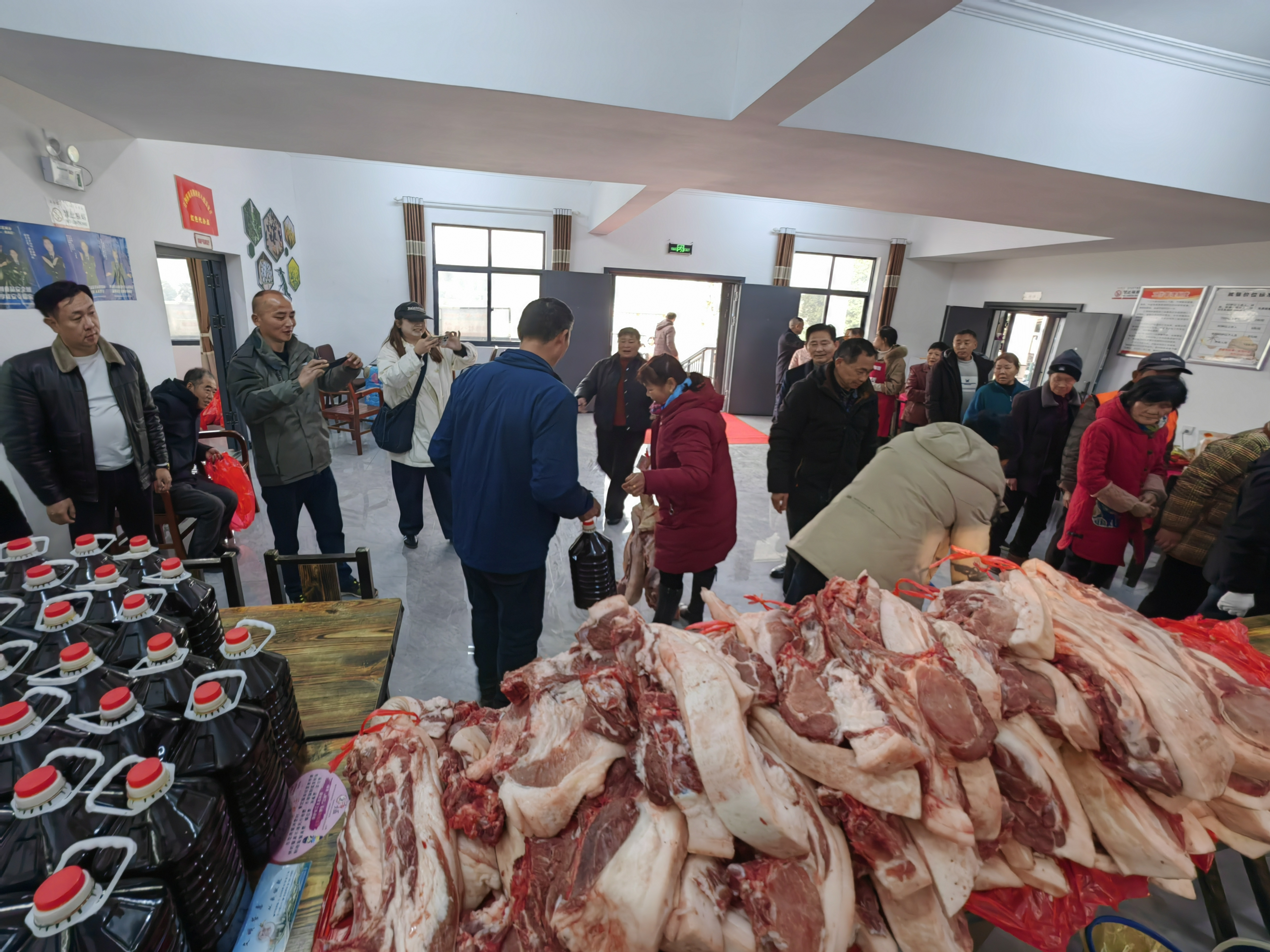 大廳里的長(zhǎng)條桌上,一刀刀剁好的新鮮豬肉堆成小山,一袋袋自己種的生態(tài)米裝成包,一提提噴香的菜籽油擺放整齊,村民們?cè)缭缗懦砷L(zhǎng)隊(duì),開(kāi)心地簽字領(lǐng)錢(qián)領(lǐng)米領(lǐng)肉?!罢媸菦](méi)想到我能分到這么多紅利,我每周開(kāi)車(chē)回來(lái)打掃衛(wèi)生,順便將社區(qū)朋友們訂的土雞和雞蛋帶回溫泉城區(qū)?!贝迕裢慷收f(shuō)。