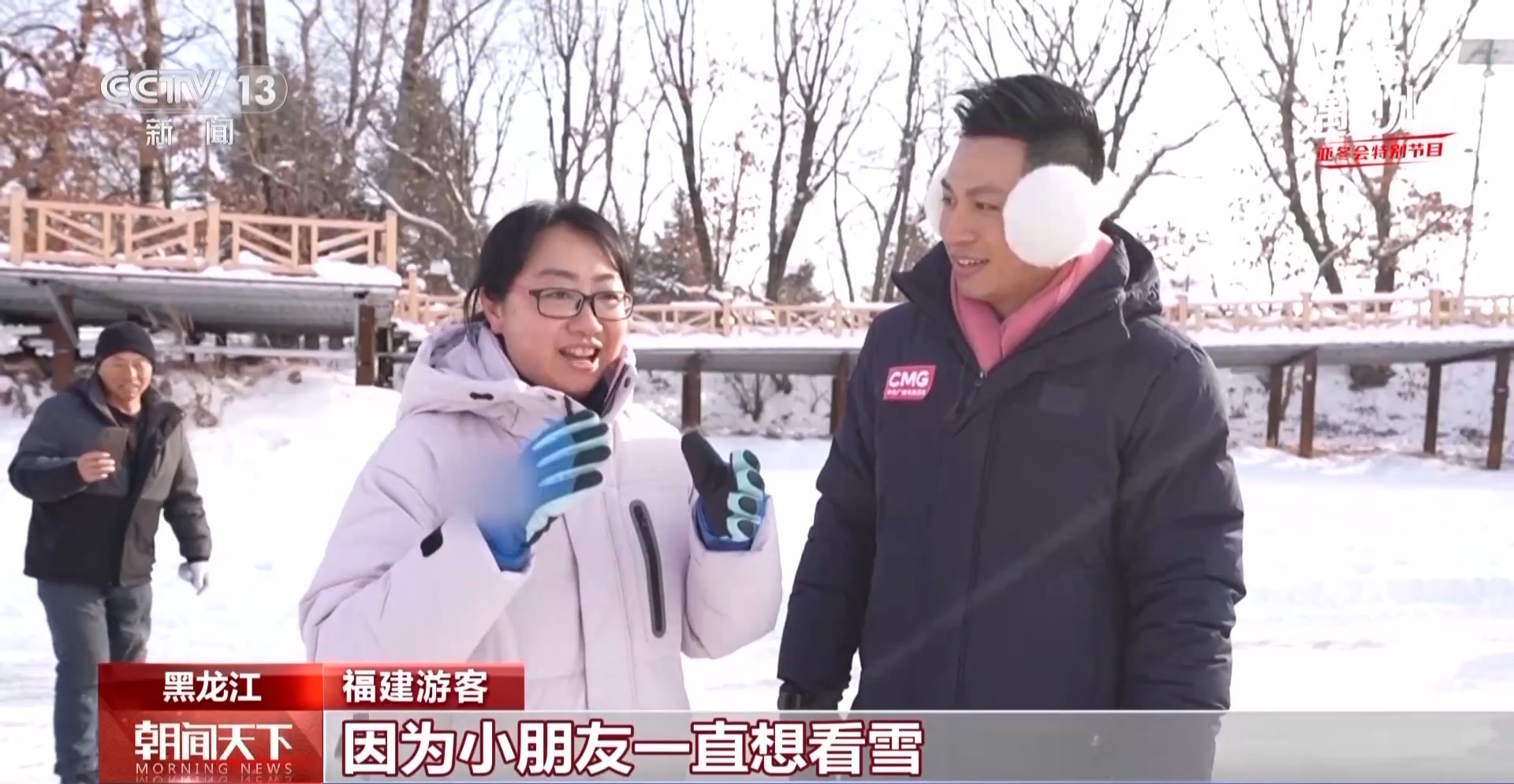 福建游客:因為小朋友一直想看雪,想看真正的雪,他去年就想來結果沒成行,今年就一定要來了,真的很好玩。