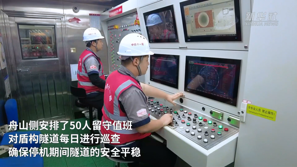 為確保工程穩(wěn)步推進,春節(jié)期間,金塘海底隧道寧波側(cè)仍有150名工人堅守崗位,施工現(xiàn)場24小時不停工作業(yè);舟山側(cè)安排了50人留守值班,對盾構(gòu)隧道每日進行巡查,確保停機期間隧道的安全平穩(wěn)。