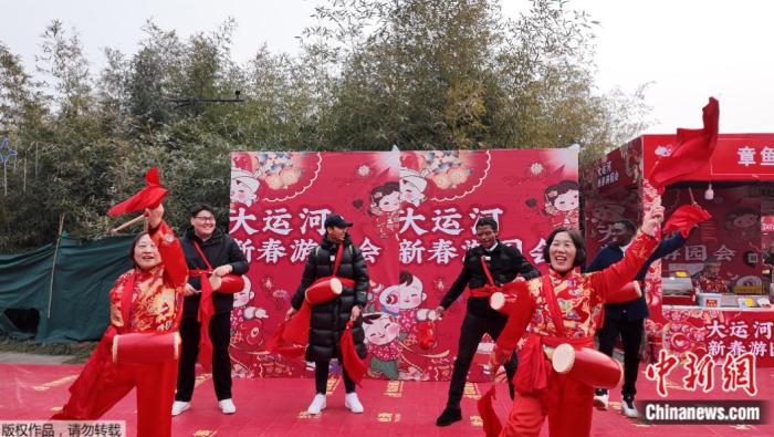 大運河新春游園會腰鼓表演。中新網(wǎng) 林勐男 攝