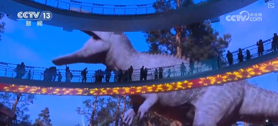 春節(jié)期間循環(huán)播放的恐龍科學藝術展、春節(jié)主題展、春節(jié)檔電影精編等“四屏聯(lián)動”原創(chuàng)視頻,將光影資源與科教文化有機融合。特別是恐龍科學藝術展深受小朋友喜愛。展覽現(xiàn)場,巨幅卷軸屏以直觀的方式展現(xiàn)恐龍的樣貌與龐大體型,邀請觀眾與這些史前巨獸“比高”。環(huán)屏則將播放引人入勝的動畫視頻,生動再現(xiàn)侏羅紀中期恐龍的生活場景,讓觀眾仿佛可以跟隨恐龍的步伐,重返遠古世界。
