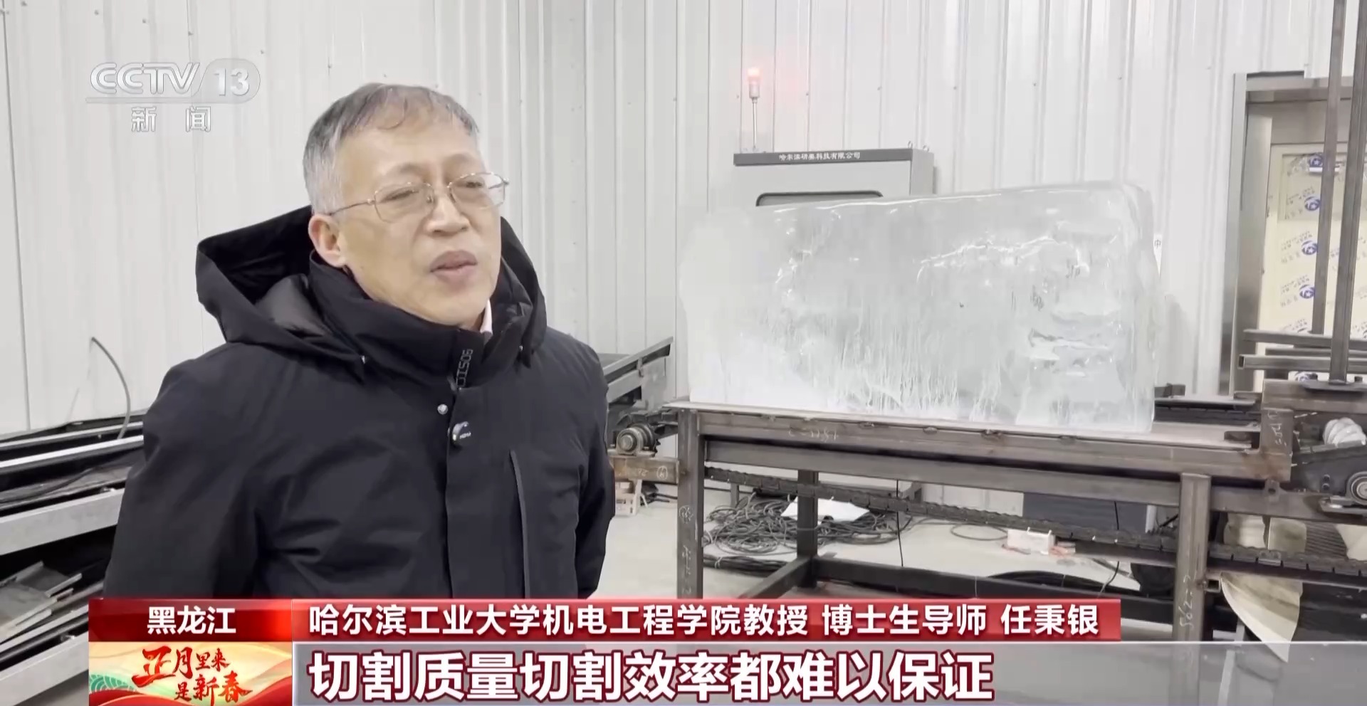哈爾濱工業(yè)大學機電工程學院教授、博士生導師 任秉銀:這么多年來建冰雕設施用的冰一直都是人工在切,使用手工鋸,切割質量切割效率都難以保證。在這種情況下,對智能自動化生產(chǎn)標準冰砌塊的需求十分迫切。