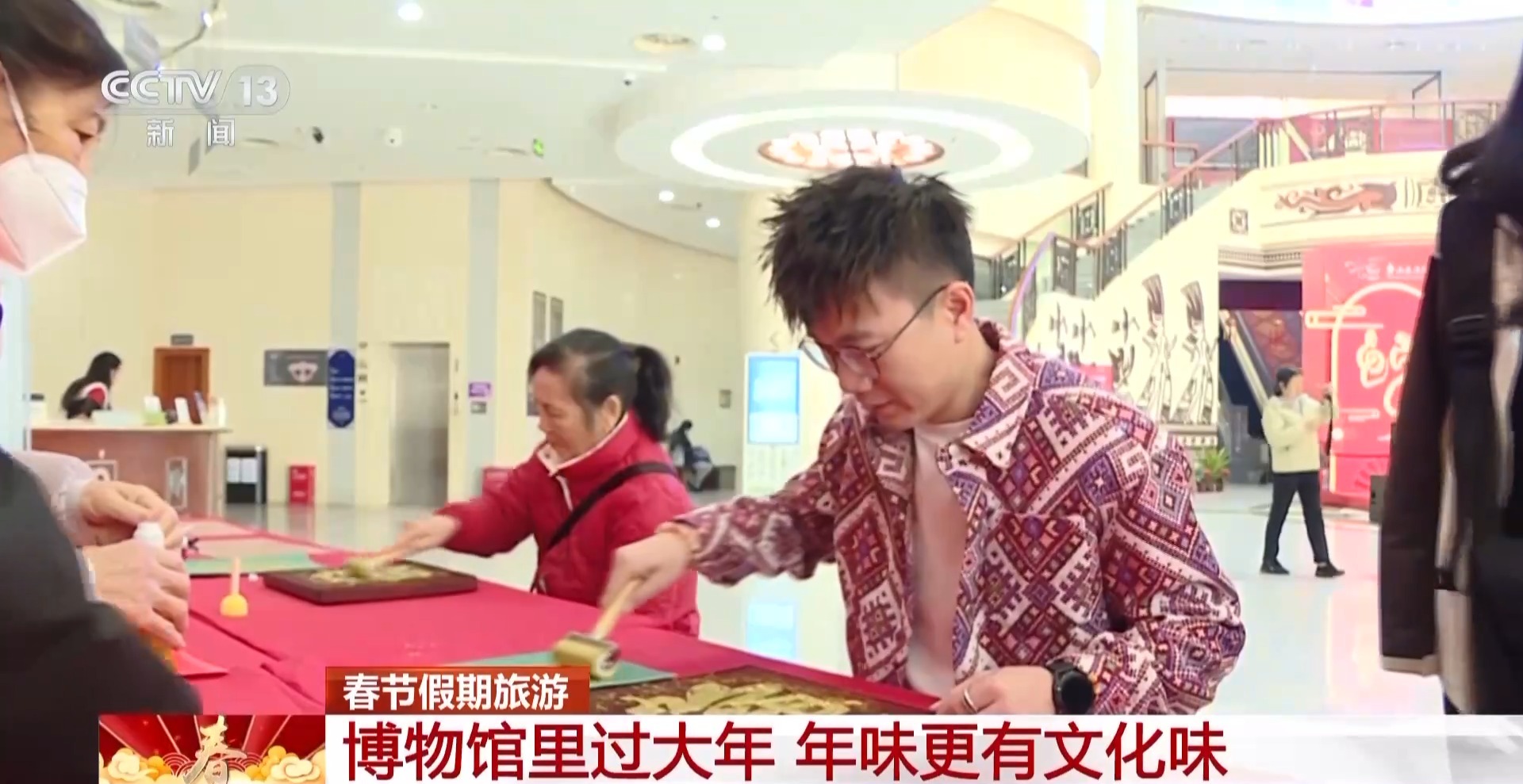 在廣西,民族博物館里“金蛇行萬里 迎新齊納?!薄袊鴤鹘y(tǒng)春節(jié)民俗系列文化活動火熱開展,“?!弊滞赜 ⒓舸盎ǖ然顒幼層^眾把“福氣”帶回家。在壯族文化展廳,非物質文化遺產代表性傳承人現(xiàn)場展示織錦技藝、繡球制作技藝,傳遞對美好生活的愿景。