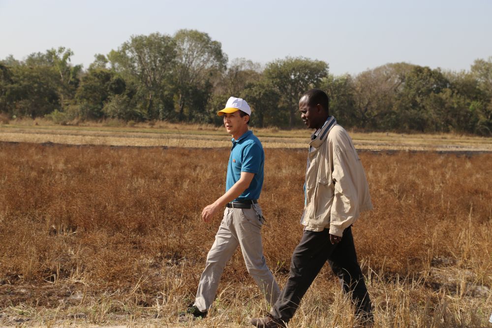 正月初一一早,吃完熱騰騰的湯面,專家們便驅(qū)車前往加布區(qū)的卡蘭塔巴農(nóng)場(chǎng),查看水稻播種前的土地平整進(jìn)度。通往農(nóng)場(chǎng)的唯一通道是一條坑洼不平的土路,雨季泥濘,旱季塵土飛揚(yáng),他們對(duì)此早已習(xí)以為常。