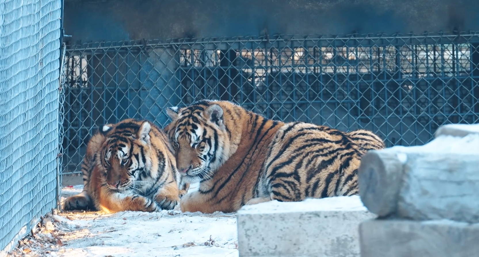 飼養(yǎng)員 楊忠亮:它們兩個(gè)現(xiàn)在是在一歲多快到一歲半了,體重也能達(dá)到150多斤以上了。我們給它提供了一個(gè)比較大的活動(dòng)場(chǎng)地,讓它們能活動(dòng)得比較開(kāi)闊,能更好的與游客去見(jiàn)面。這個(gè)年齡段也是非常愛(ài)打愛(ài)斗愛(ài)鬧的年齡。游客隨時(shí)來(lái)到我們東北虎林園,也會(huì)隨時(shí)的看到它們和游客很好的一個(gè)互動(dòng)。