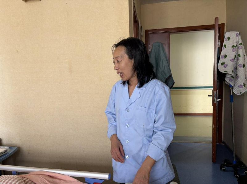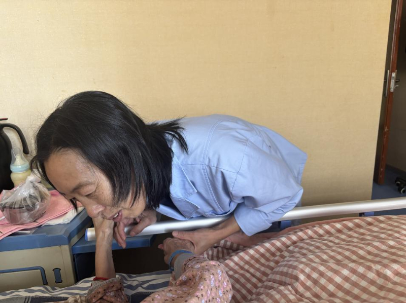 來(lái)自黑龍江省的李世娟,今年55歲,因?yàn)槟昙o(jì)原因本想從事育兒嫂工作的她只能從事護(hù)理工作。“家政公司說(shuō)雇主更想要年輕些的阿姨帶孩子。”輾轉(zhuǎn)之下,她考取了護(hù)工資格證,成為一名老年護(hù)理員。“這是我照顧的第二位老人”她輕聲說(shuō)。第一位老人出院時(shí),家屬本想帶她走,她婉拒了,“看著他們好起來(lái)我也高興,但這里總有更需要我的人。”談話間,90床奶奶的兒子來(lái)探望老母親,輕摸著奶奶的頭一遍又一遍地問(wèn)著“睜眼看看,我是誰(shuí)呀”,奶奶也是含糊不清地說(shuō)著“不知道”,兒子半開(kāi)玩笑地說(shuō)“傻老太太”。李世娟在一旁緊忙說(shuō):“你不要說(shuō)她傻啊,糊涂啊,因?yàn)榛加邪柶澓DY的人有時(shí)是清醒的,一聽(tīng)你說(shuō)她傻她就覺(jué)得自己好像是傻了”,李世娟向記者說(shuō),自己平日很喜歡看健康教育節(jié)目,見(jiàn)到認(rèn)識(shí)的人也會(huì)多科普幾句,“我姑娘說(shuō),媽你別老給人家上課,我說(shuō)媽那不是上課,只是想把自己知道的分享給人家”,李世娟一邊說(shuō),一邊難掩苦笑。