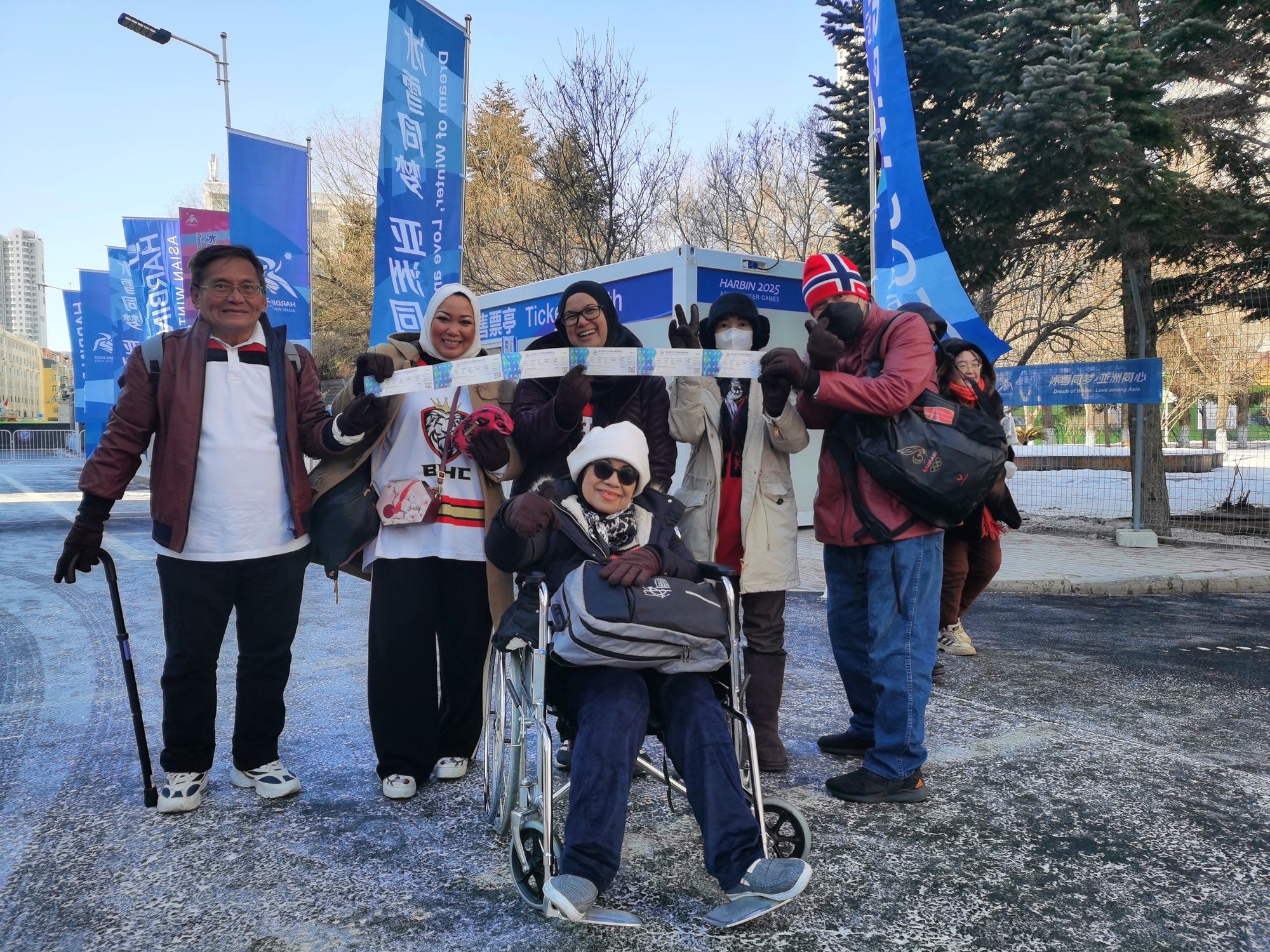 泰國(guó)觀眾阿伊莎的未婚夫是巴林男子冰球隊(duì)的7號(hào)隊(duì)員。亞冬會(huì)開(kāi)幕前夕,阿伊莎帶著母親、姐妹等一家六口,從曼谷直飛到哈爾濱觀賽助威。她告訴記者,母親因?yàn)樾袆?dòng)不便需要坐輪椅觀賽,在哈爾濱,他們一家得到了賽場(chǎng)工作人員的悉心照顧。