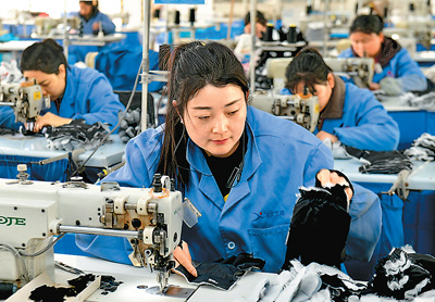 近日,在山東省濟(jì)寧市嘉祥縣的一家企業(yè)車間內(nèi),工作人員在縫制滑雪手套。作為中國重要的滑雪手套生產(chǎn)基地之一,嘉祥縣手套產(chǎn)品遠(yuǎn)銷60多個(gè)國家和地區(qū)。新華社記者 郭緒雷 攝