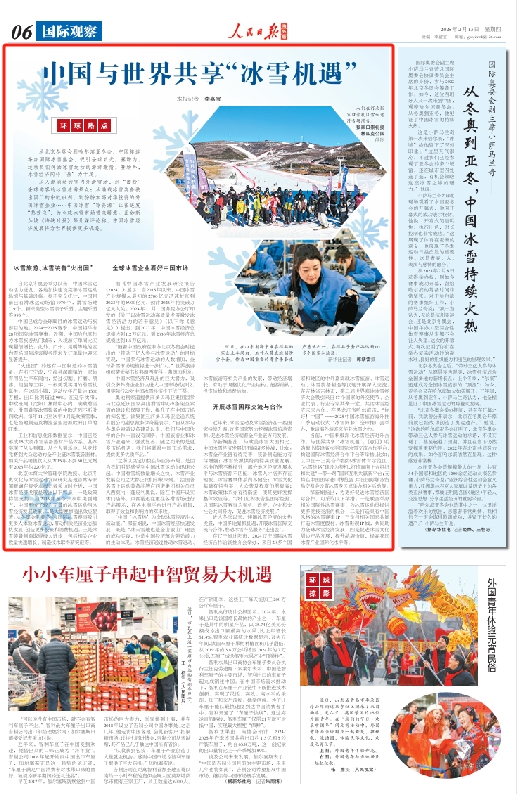 從人潮涌動(dòng)的室內(nèi)外滑雪場,到“圈粉”全球游客的冰雪旅游景點(diǎn);從滿載冰雪裝備駛出國門的中歐班列,到紛紛加碼對(duì)華投資的外國冰雪企業(yè)……中國冰雪“冷資源”正在迸發(fā)“熱效應(yīng)”,為全球冰雪市場帶來暖意。正如新加坡《海峽時(shí)報(bào)》等外媒評(píng)論稱,中國冰雪經(jīng)濟(jì)發(fā)展將為世界提供更多機(jī)遇。