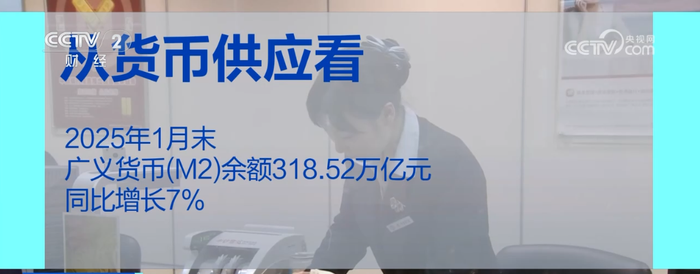 從貨幣供應看,2025年1月末,廣義貨幣(M2)余額318.52萬億元,同比增長7%。從信貸投放看,1月末,人民幣貸款余額260.77萬億元,同比增長7.5%;1月份,人民幣貸款增加5.13萬億元,同比多增2133億元。