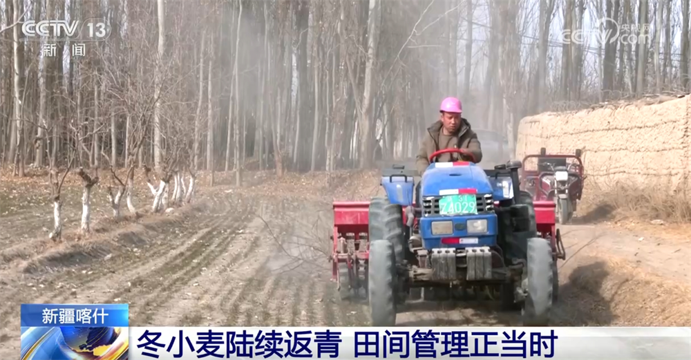 在新疆喀什阿依庫勒村,記者看到一袋袋肥料已碼放在地頭,拖拉機正在田間為冬小麥追施返青肥。為確??κ驳貐^(qū)冬小麥春季管理工作順利進行,當?shù)剞r業(yè)部門結合當前冬小麥的長勢和天氣情況,科學指導,組織做好冬小麥病蟲草害防治、保墑防凍、追肥等工作。