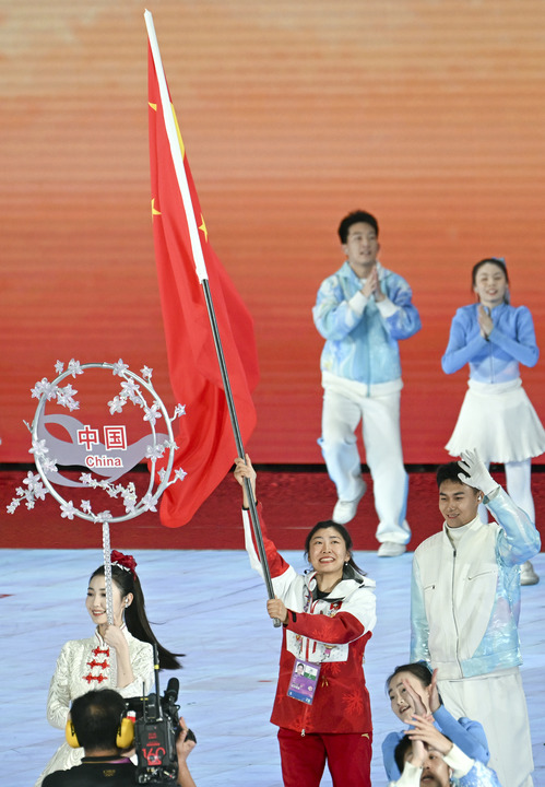 自由式滑雪運動員徐夢桃擔任中國代表團的旗手。35歲的她,是中國雪上項目的傳奇人物,實現(xiàn)了冬奧會、世錦賽、世界杯等多項大賽的大滿貫,成為中國雪上項目首位實現(xiàn)“全滿貫”的運動員。在本屆亞冬會上,她以 90.94 分的成績奪得女子空中技巧金牌,還帶領(lǐng)團隊在多個項目中斬獲佳績。她堅韌不拔的精神和卓越的競技表現(xiàn),正是中國冰雪運動員的代表。