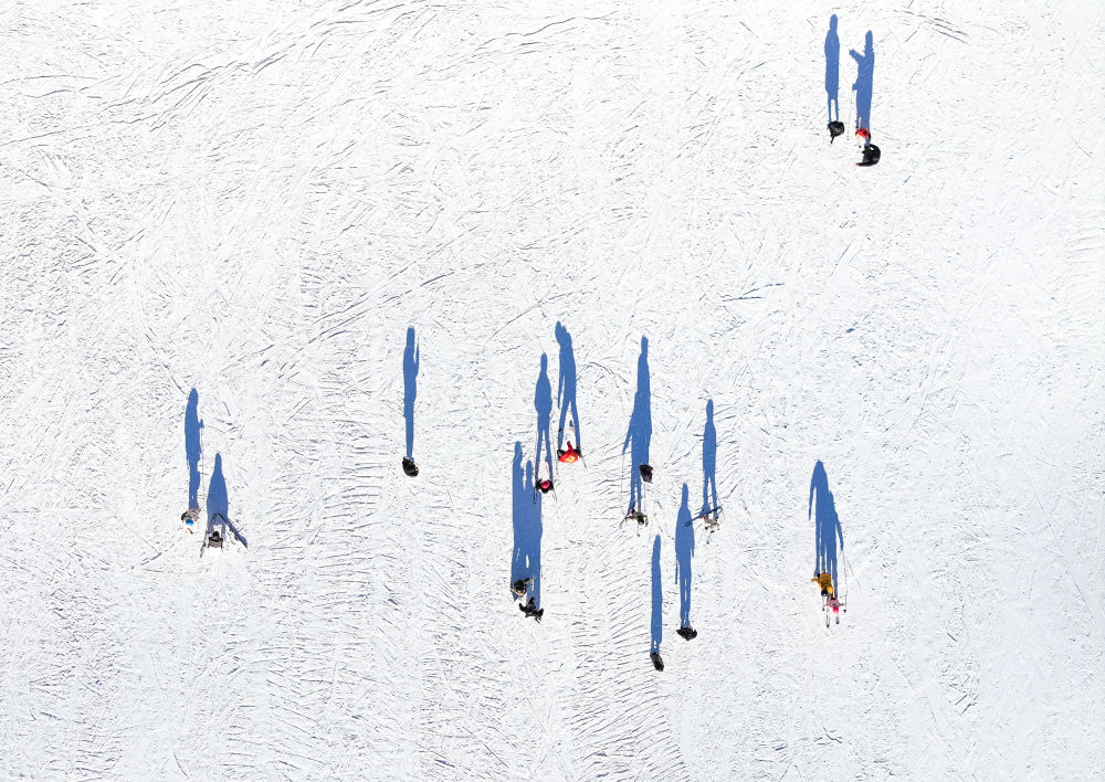 滑雪愛好者在內(nèi)蒙古呼倫貝爾扎蘭屯市金龍山滑雪場滑雪(無人機照片)新華社記者連振 攝