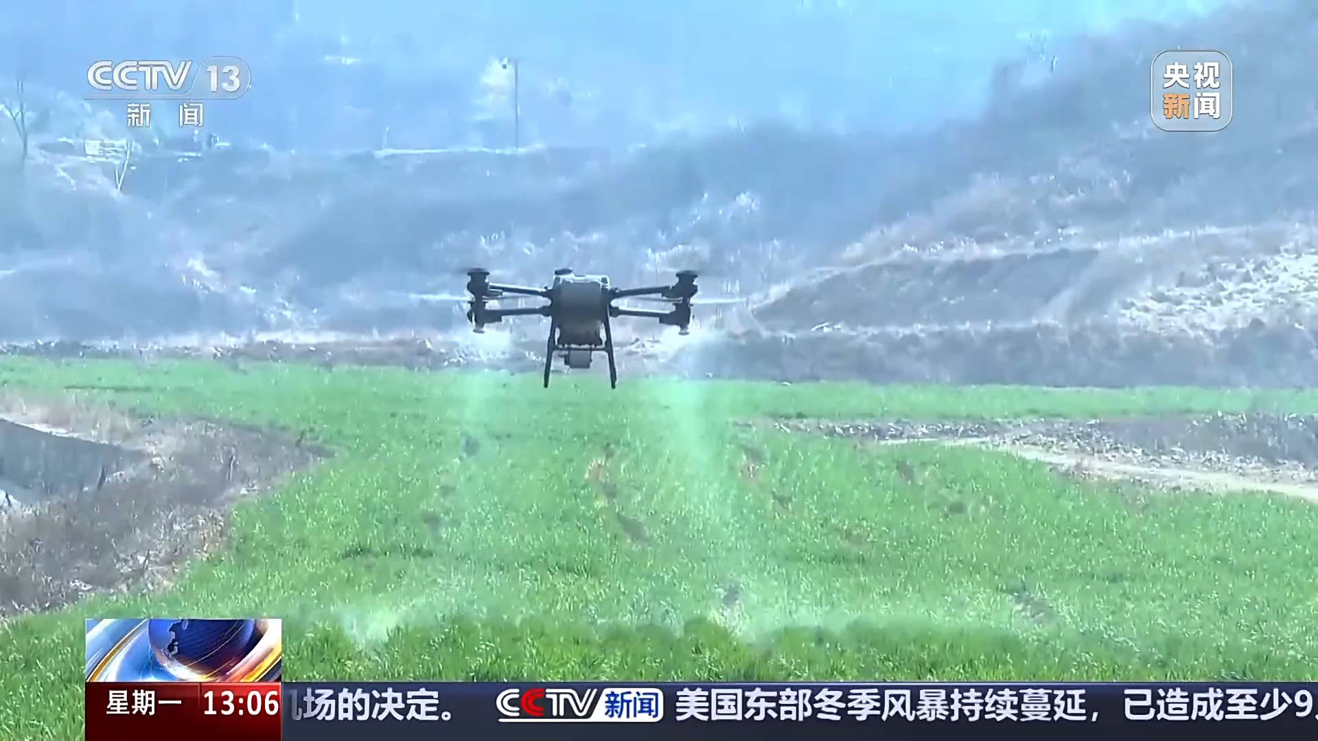 為保障春耕備耕工作的順利進(jìn)行,在小麥基地里,兩架滿載肥料的植保無人機(jī)正沿著設(shè)定航線精準(zhǔn)施肥,整個過程快捷高效。