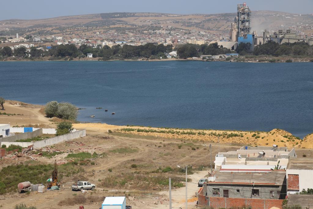 這是2024年8月12日在突尼斯比塞大拍攝的比塞大大橋項目施工工地和比塞大運河。新華社發(fā)(阿代爾攝)