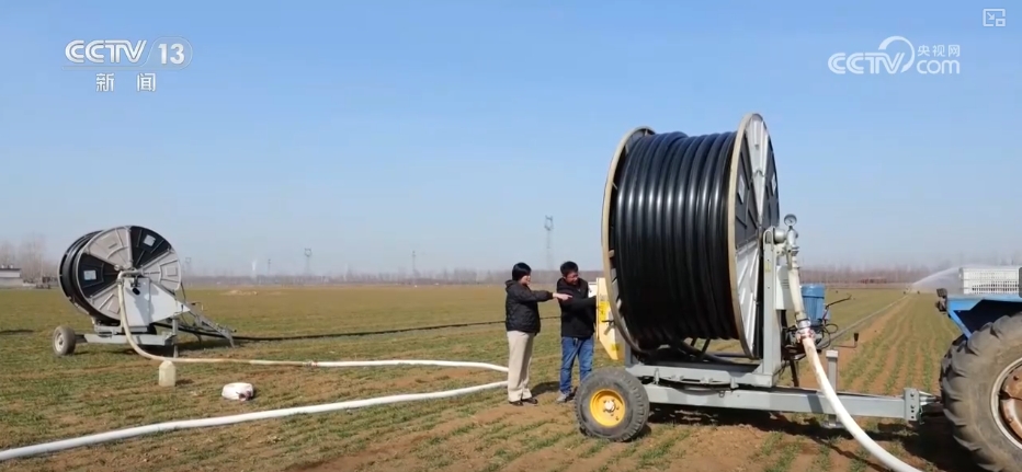 石墻鎮(zhèn)面坊村種植戶(hù)王昌松2025年種植了700畝小麥。他介紹,過(guò)去傳統(tǒng)的大水漫灌每畝地要用水80立方米。現(xiàn)在用上了這種新型噴灌設(shè)備,每畝地用水減少到50多立方米,不僅節(jié)水,還降低了人工操作成本