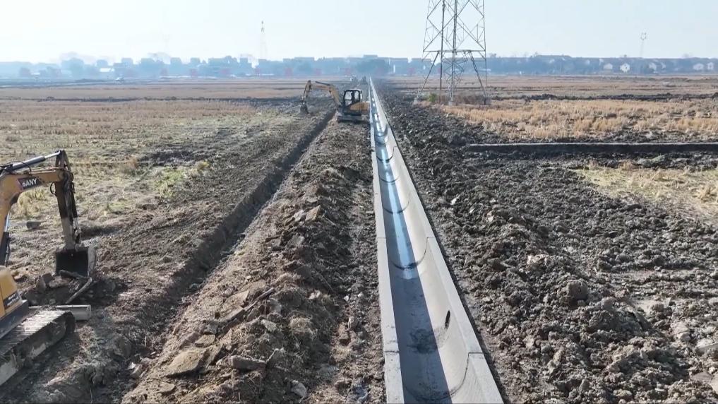 在資陽區(qū)沙頭鎮(zhèn)富興村高標(biāo)準(zhǔn)農(nóng)田建設(shè)現(xiàn)場,工人們正緊張有序地開挖渠道、安裝渠槽。