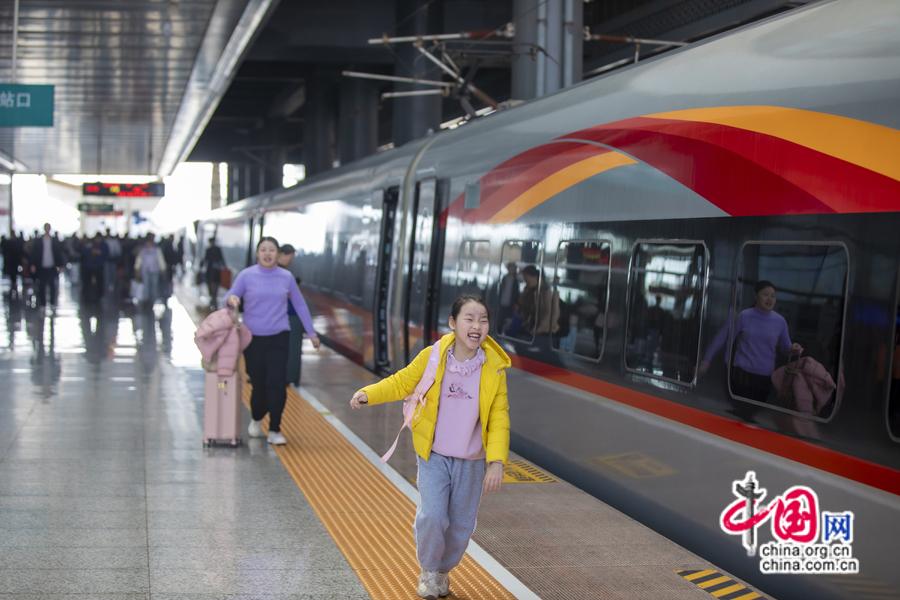 2025年春運期間,旅客在贛州西站登乘智能復(fù)興號列車。中國網(wǎng)發(fā) 鄒陽/攝