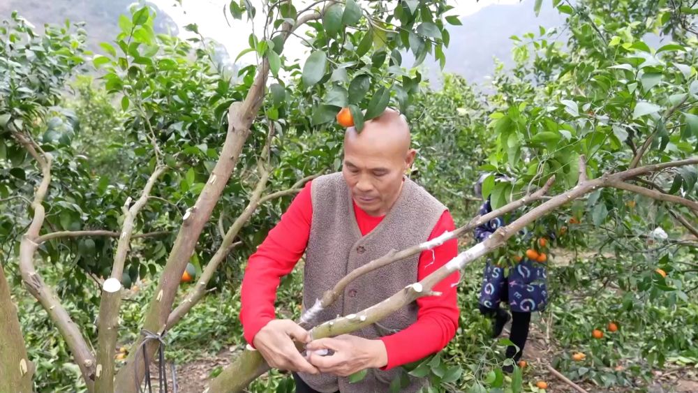 在大山深處,同樣火熱的生產(chǎn)在田陽(yáng)區(qū)五村鎮(zhèn)洞琴村上演。農(nóng)戶(hù)們正在加緊嫁接新芽,將沃柑換種為金秋砂糖橘。