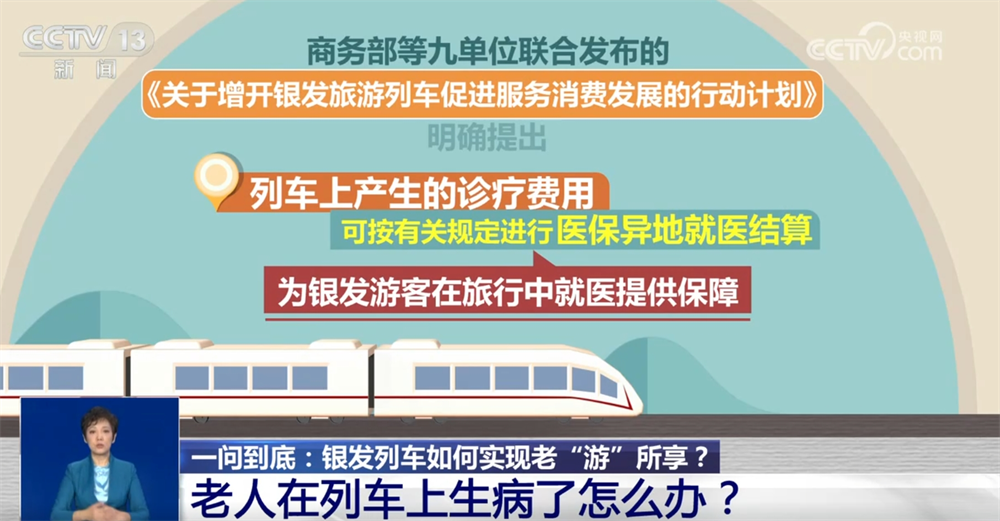 日前,商務(wù)部等九單位聯(lián)合發(fā)布的增開銀發(fā)旅游列車的行動(dòng)計(jì)劃明確提出,列車上產(chǎn)生的診療費(fèi)用可按有關(guān)規(guī)定進(jìn)行醫(yī)保異地就醫(yī)結(jié)算,為銀發(fā)游客在旅行中就醫(yī)提供了保障。