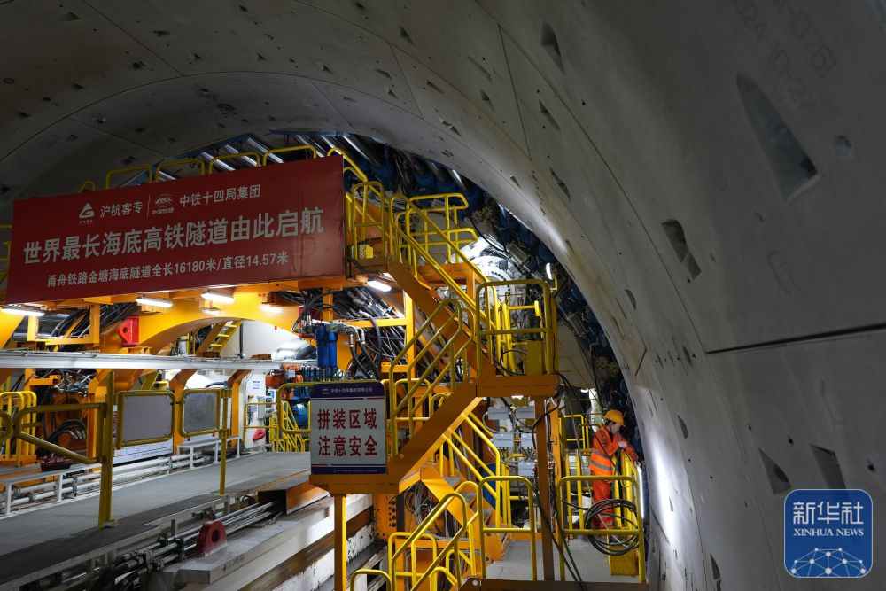 甬舟鐵路金塘海底隧道西起浙江寧波市北侖區(qū),東至舟山市金塘鎮(zhèn),全長(zhǎng)16.18公里,是世界最長(zhǎng)海底高鐵隧道。