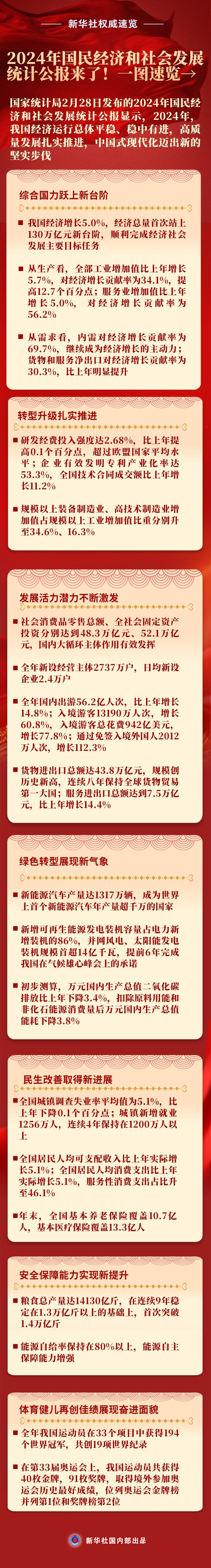 新華社權威速覽丨2024年國民經(jīng)濟和社會發(fā)展統(tǒng)計公報來了!一圖速覽→