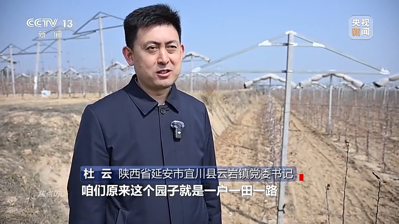 陜西省延安市宜川縣云巖鎮(zhèn)黨委書記 杜云:“原來這個園子是一戶一田一路,家家都要有生產(chǎn)路,原來有108塊,小田并大田以后并成了24塊,地界少了土地就多出來了,漲了95畝地。小田并大田以后以株代畝,土地不是按畝分,是按株分,一畝地能栽110株。如果你有一畝地就給你分110株,兩畝地分220株?!?/p>