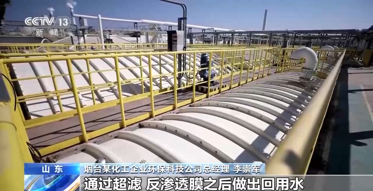 煙臺(tái)某化工企業(yè)環(huán)保科技公司總經(jīng)理 李崇軍:我們的污水處理廠最開始設(shè)計(jì)的時(shí)候就采用了污污分治、清污分治的一些策略,包括物化、生化、高級(jí)氧化的一些工藝,最后全部送到我們的回用水車間,通過超濾、反滲透膜之后做出回用水,再送回園區(qū)使用。