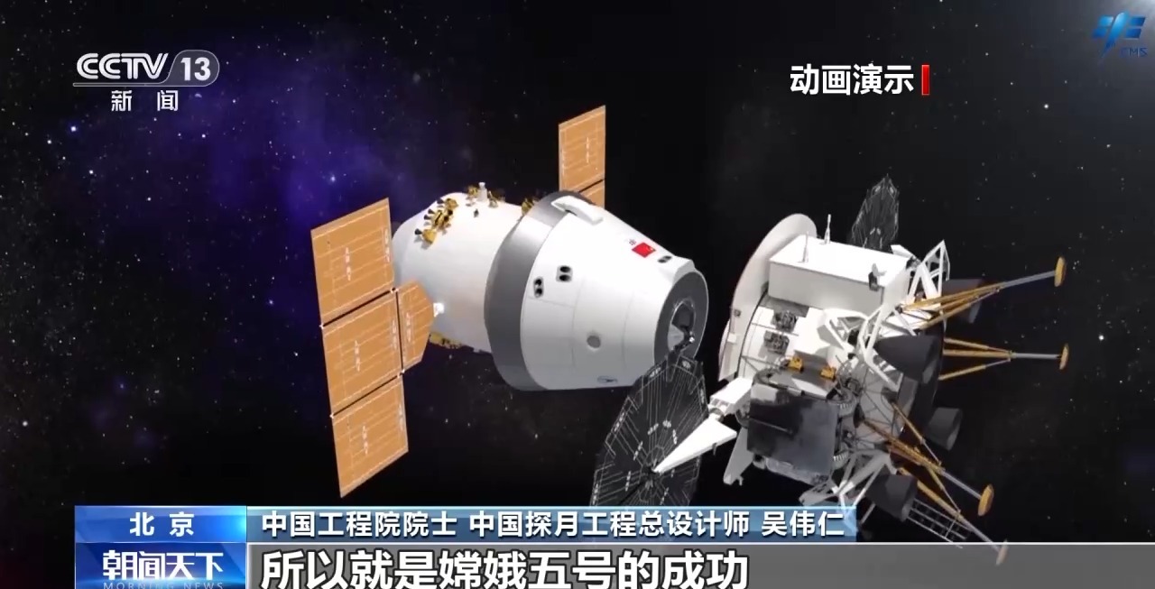 中國工程院院士 中國探月工程總設(shè)計師 吳偉仁:當(dāng)時就想利用嫦娥五號來驗證我們后續(xù)載人登月技術(shù),載人登月就是在軌道上交會對接,然后人下去探測,探測完后月面起飛,在軌道上交會對接,然后人再進入返回器,返回器再和軌道器脫離,脫離過后,返回器把人送回地球。所以嫦娥五號的成功,為未來我們載人登月奠定基礎(chǔ),幾乎把所有的關(guān)鍵技術(shù)都驗證了一遍。