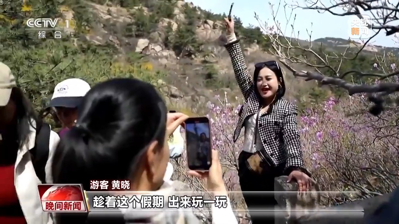 在山東青島大珠山,這幾天正是觀賞野生杜鵑花的最佳時(shí)期,吸引了眾多市民游客前來(lái)登山賞花。